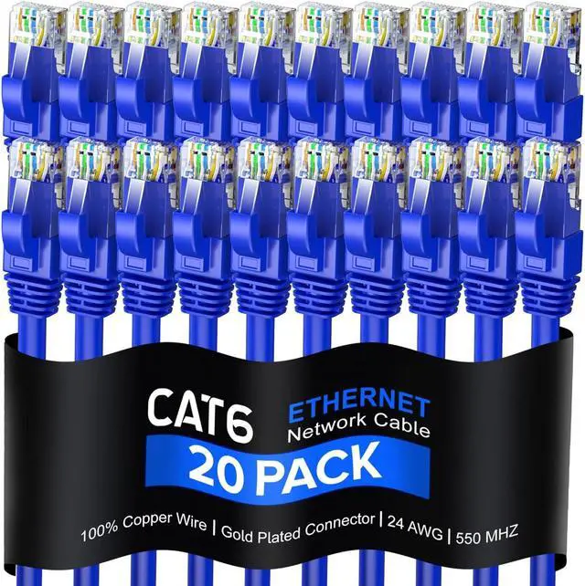 Maximm Cat 6 Ethernet Cable 10 Ft, 100% Pure Copper, Cat6 Cable (24 Pack) LAN Cable, Internet Cable, Patch Cable and Network Cable - UTP (Blue) 10 Feet