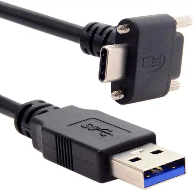 Up Angled USB 3.1 Type-C Dual Screw Locking to Standard USB3.0 Data Cable 90 Degree With Panel Mount locking Screw
