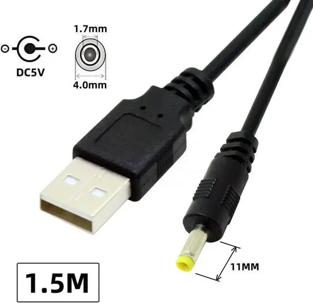 Provides 5V DC from USB,Power devices from a USB to DC port. For small electronics and devices which use a DC barrel jack for a power cable. 24awg,Length: 150 cm. For 4.0mm outer to 1.7mm inner DC plug.