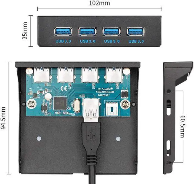 USB 3.0 HUB 4 Ports Front Panel to Motherboard 20Pin Connector Cable
