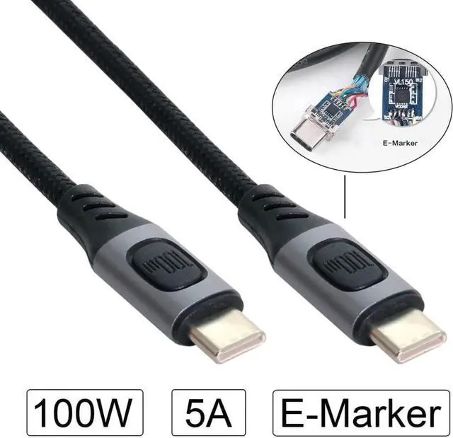 Build-in Emarker chipset,Support Scalable DC20v 5A (100W)power charging and usb2.0 480Mbps data.