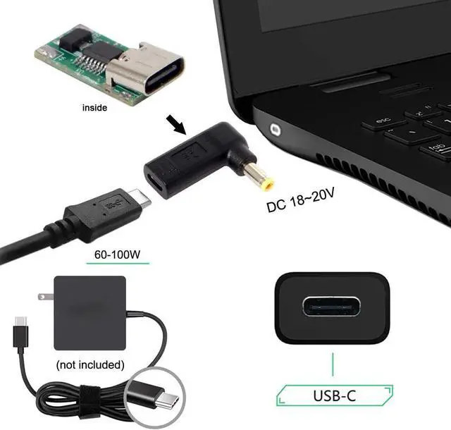 Use it with the 65W or 87W Type-C Charger to conveniently charge your Laptop with DC5.5mm 18v-20v port from a wall outlet.