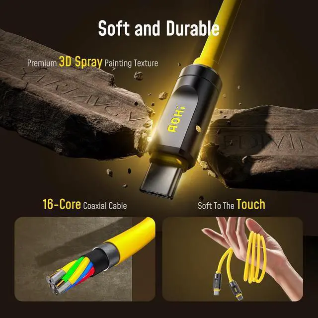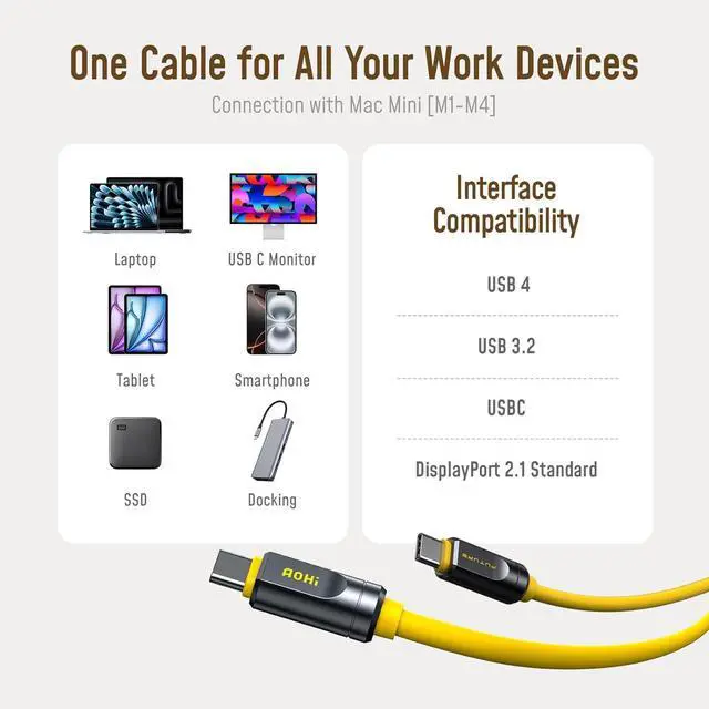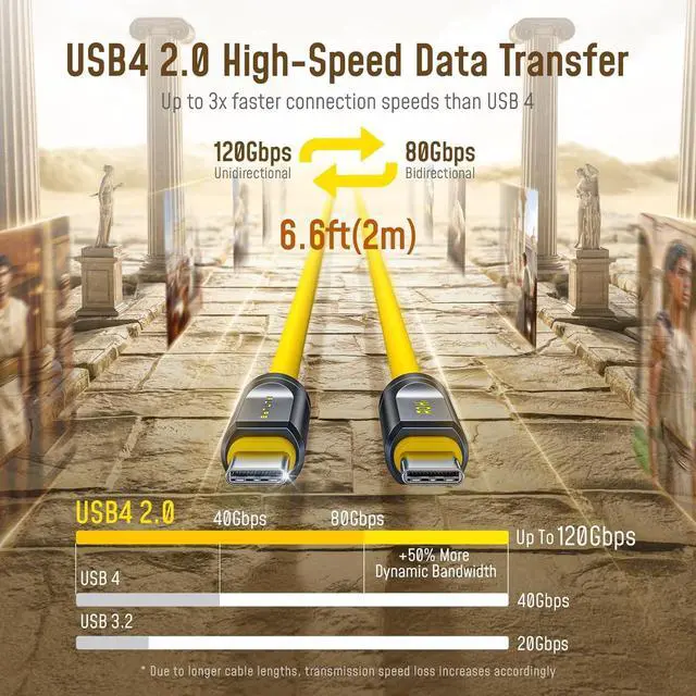 Extended 80Gbps Blazing-Speed Transfer Over 2m. Enjoy full USB4 2.0 performance at 2 meters! AOHI 2m USB-C cable delivers a blazing-fast 80Gbps bidirectional transfer rate and up to 120Gbps video bandwidthperfect for transferring 10GB files in just 1 second. Ideal for high-end workflows involving 4K/8K video, 3D rendering, or large media librariesnow with even more flexibility thanks to its extended reach