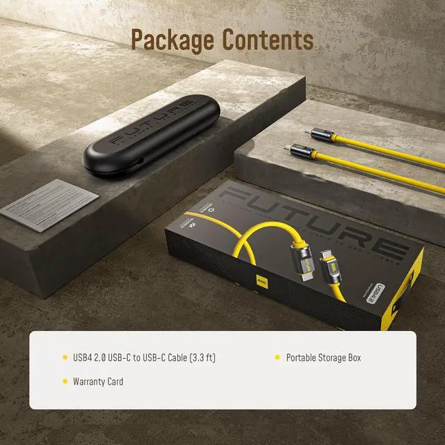 80Gb/s USB4 2.0 Cable 3.3FT with up to 120Gbps Bandwidth Boost Dual 8K/4K Display 240W PD 3.1 Fast Charging The Future Adonis for Mac mini M4 Pro MacBook iPhone 17 Pro Max, SSD,Docking, Yellow
