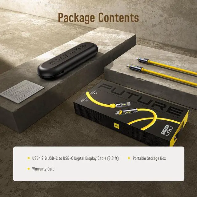 USB4 2.0 Cable with LED Digital Display 3.3ft, 240W PD3.1 Fast Charging, 80Gbps Data Transfer, Dual 8K Display, The Adonis USB C Cable for MacBook Pro/iPhone 17 Pro Max/Galaxy/SSD/Docking,Yellow