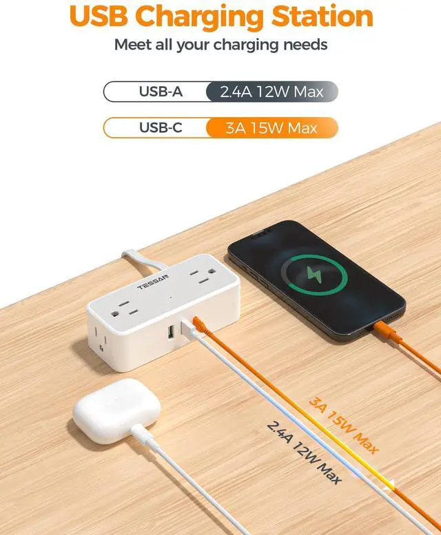 2 types of USB ports offer you different charging needs; Ideal for charging devices such as phone, laptop, cell phone, tablet, Headset etc