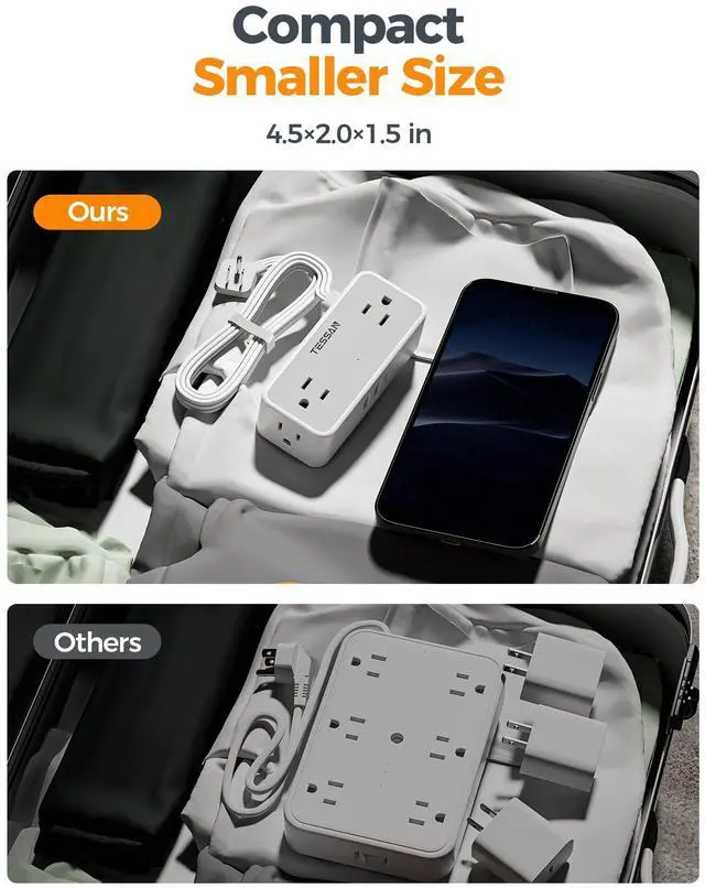 This small but versatile flat power strip have 4 widely outlets and 2 USB A , 1 USB C Ports, which is suitale for below scenes: