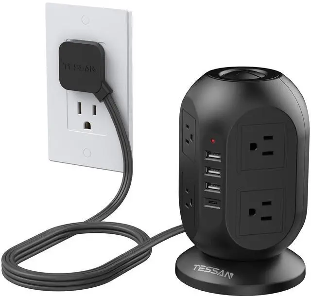 Tower Power Strip is truly widely-spaced outlets that multiple outlets can be used simultaneously; The USB power strip has 1 USB-C that features 5V/3A, 3 USB-A ports which charge up to 15W max, featuring 5V/2.4A; Suitable for charging small appliances such as phone, tablet