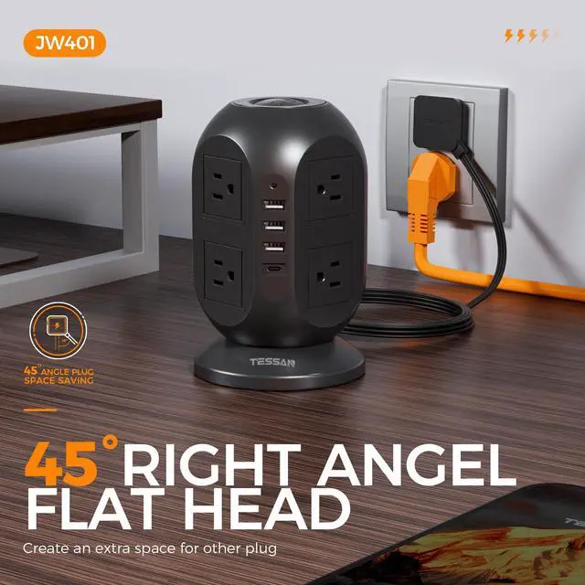 As you can see, it's a great design; Whether it's on the desktop or on the floor, it cleans up your line very neatly; More importantly, tower power strip is a space saver compared to long strips