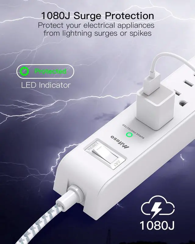 This power strip has surge protection overload protection, short-circuit protection, over-current protection, and so on. The on/ off switch can automatically shut off when the power exceeds rated value, to protect your expensive devices like computers, TV at home, office, college dorm, etc