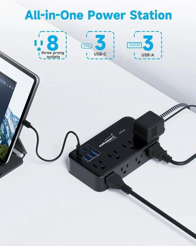 Waksmart 2800J Surge Protector Power Strip 8 AC Outlets with 6 USB Ports