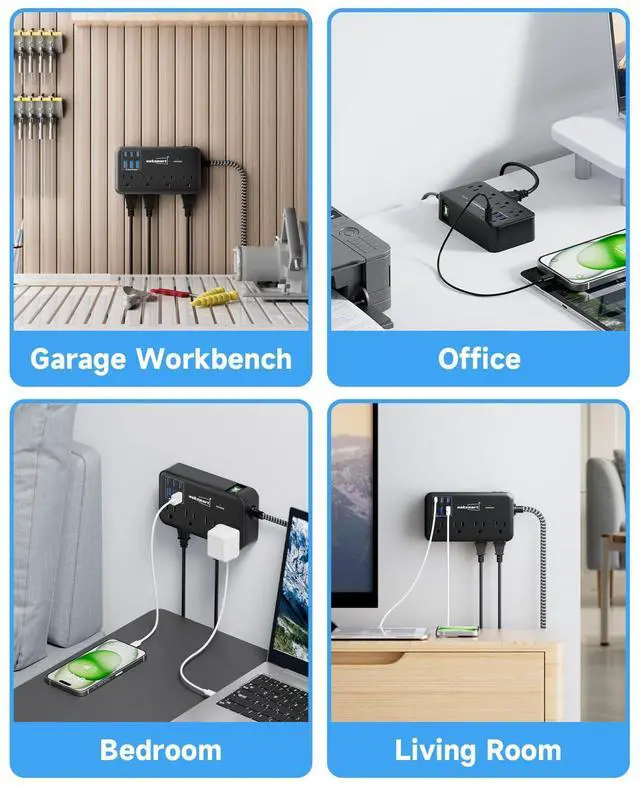 With four non-slip grips at the bottom, the power strip is less likely to slip off the table when you plug in multiple electronic devices.