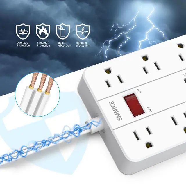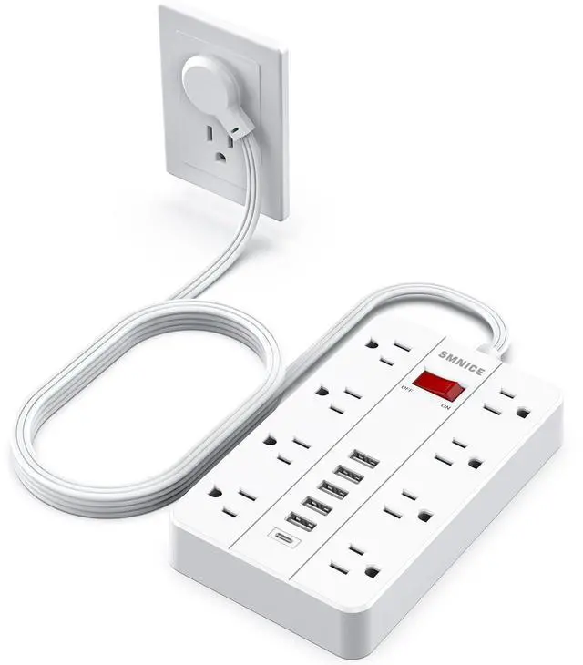 8 AC outlet cord with 6 USB(1 USB-C) ports for home and office