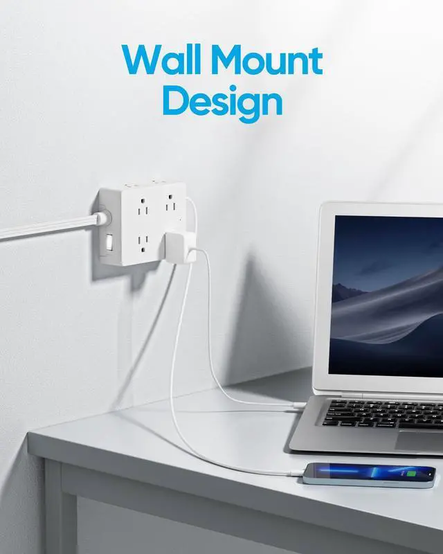 Olcorife Flat Extension Cord with Outlet Cover, Flat Plug Power Strip with 6 Outlets and 3 USB Ports, 2000 Joules Surge Protector, 3 FT Cord Hidden Outlet Extender for Tight Spaces