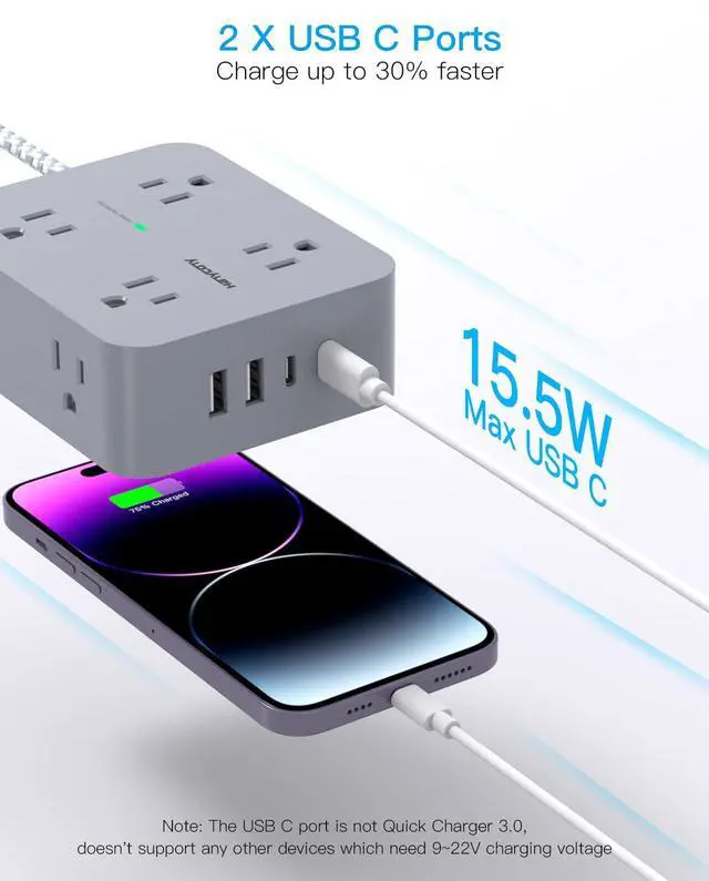 HANYCONY Surge Protector Power Strip with USB C Ports