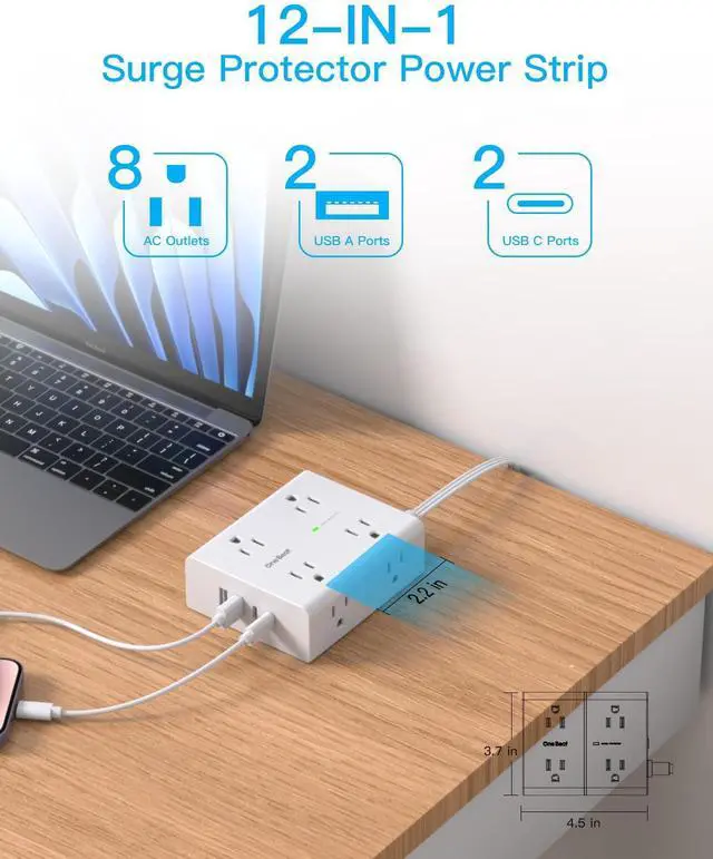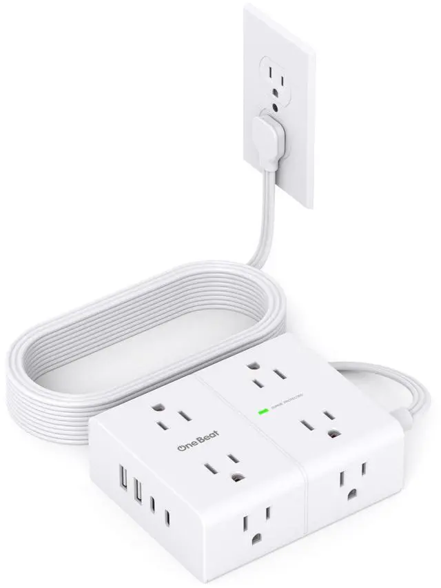 Upgraded One Beat Power Strip added 2 USB-C ports to meet more charging demand. USB-C port can up to 15W/5V/3A max which is up to 30% faster than other chargers.