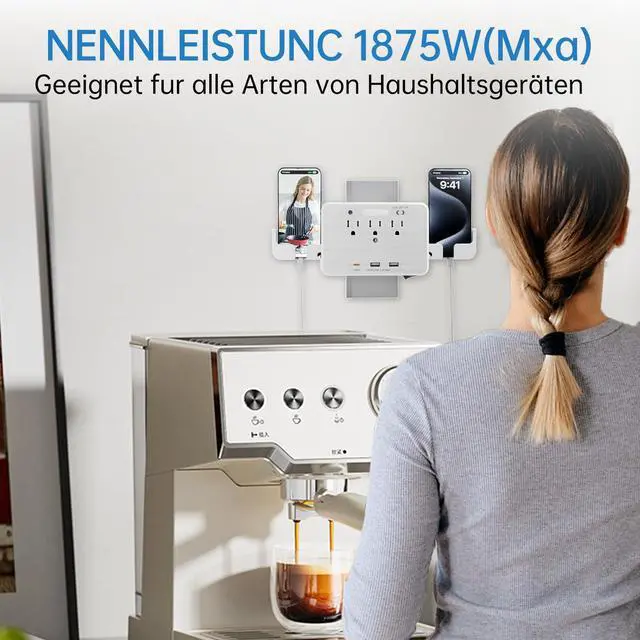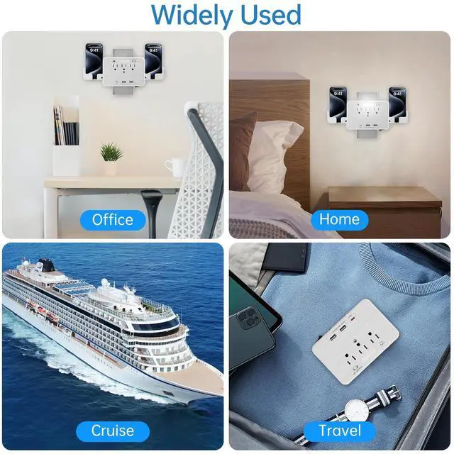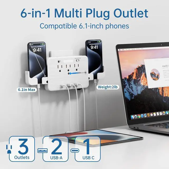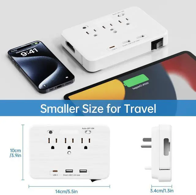 Just plug into normal power outlet, this multi-functional USB outlet wall charger expands 1 outlet to 3 AC outlets & 3 smart USB charging ports which allow you to power up to 6 devices simultaneously.