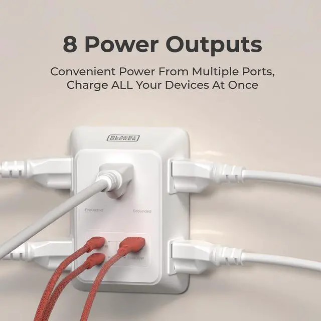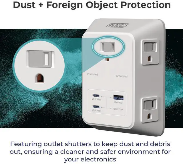 Plug into the PowerHub Pro, a versatile and safety-focused outlet extender designed to streamline your charging experience. With five AC sockets and three USB ports (2 Type C and 1 USB), it keeps your devices powered up quickly and simultaneously. The Type C port boasts PD fast charging capabilities, ensuring your devices are ready to go in no time. Safety is prioritized with a built-in, 6-point safety system and an outlet shutter design for added protection, providing you with peace of mind every time you plug in.
