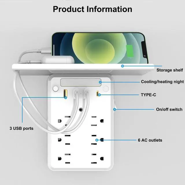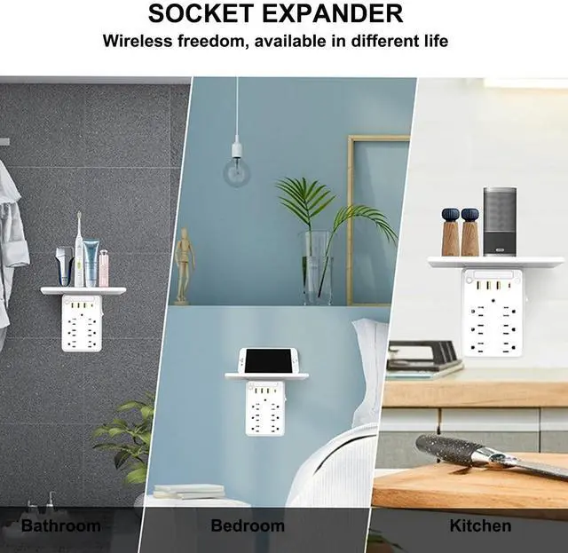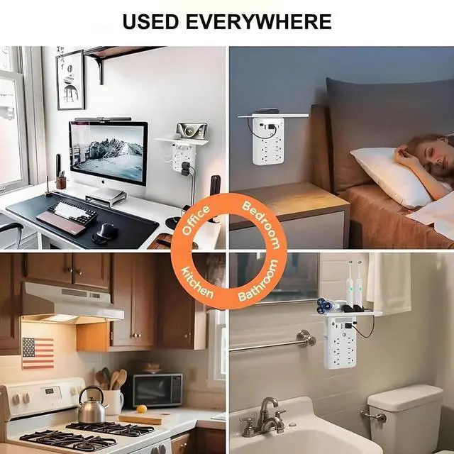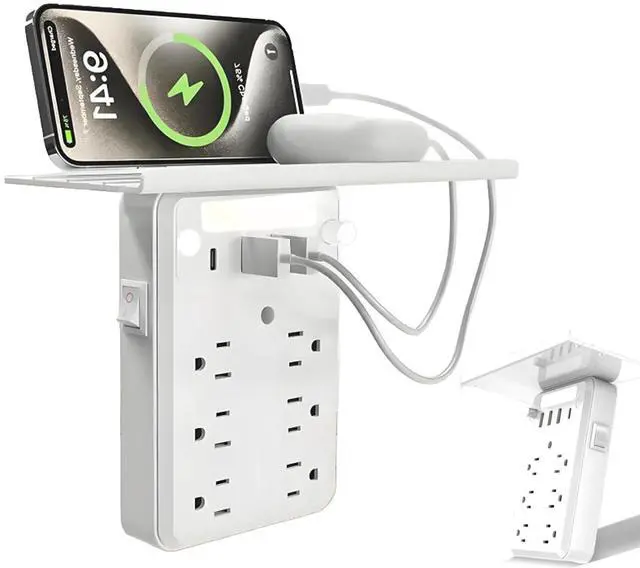 A Smarter, Safer Way to Power Your Life-- 9 in 1 wall outlet with night light and shelf