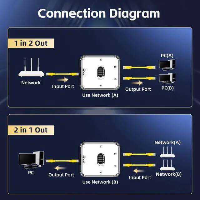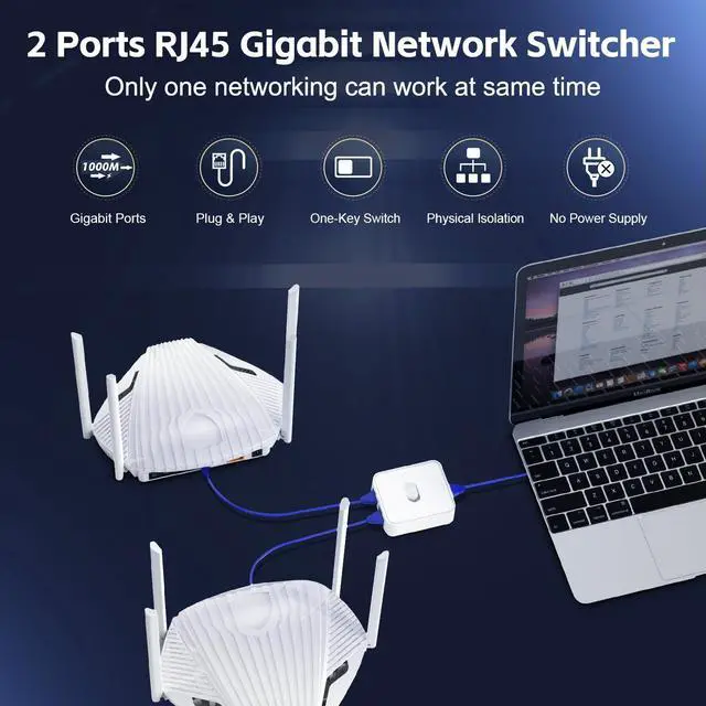 Effortlessly switch between networks and devices with the Gigabit Network Switcher. Its compact design and intuitive manual switching make it a versatile solution for your connectivity needs.
