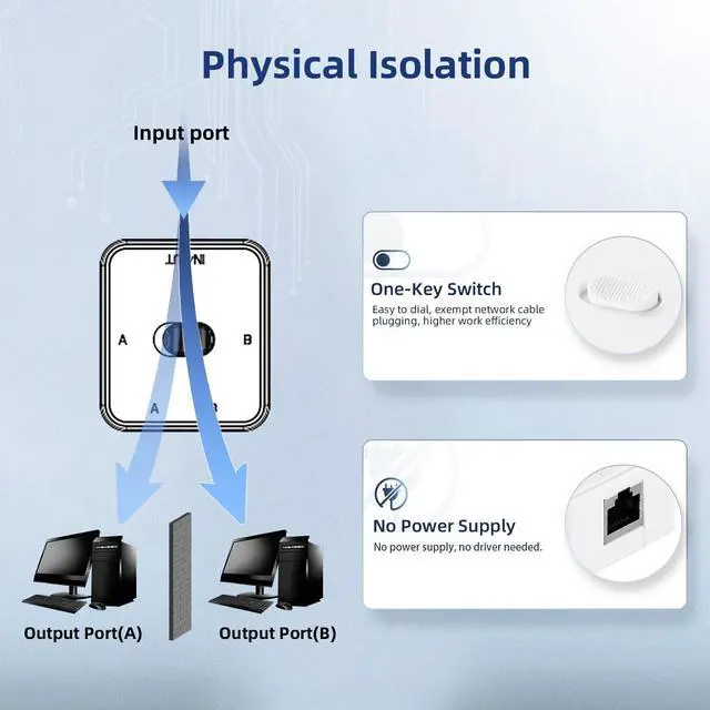 Binardat Gigabit Network Switcher, Passive Ethernet Selector, in/Out to A or B Network, Bidirectional Manual Switcher, No Power Required (White)