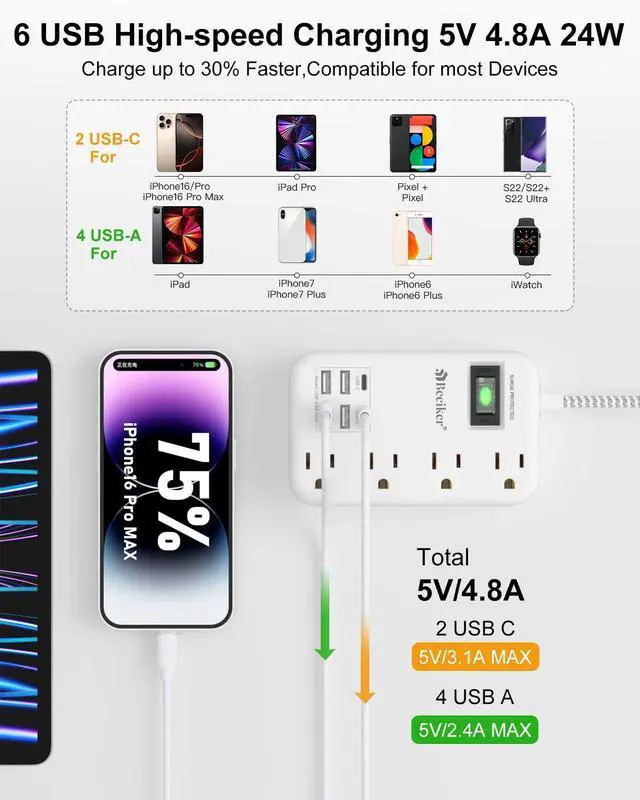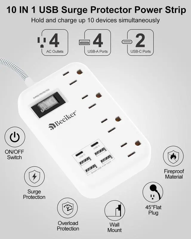 Why Beeiker 6 USB Surge Protector Power Strip?