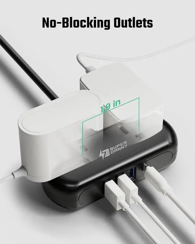 The only outlet nearest is too far to reach? Get it closer with a SUPERDANNY USB power strip. Charge up to 6 devices altogether right near your bed, sofa, couch, etc. even without USB blocks or adapters.