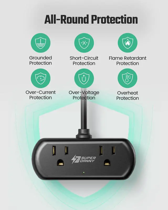 ·“A multiple outlets electrical strip doesn’t have to be big or long”, our product developer believes. Mini as this one is, it uses a super small footprint (4.3” x 1.7”) on your bedroom nightstand, end table, or office desk.