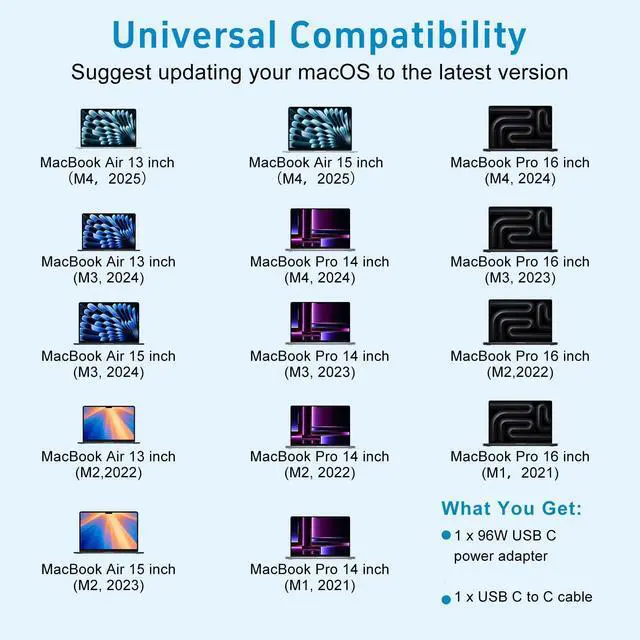 ![]() 70W USB-C to Mag 3 Charger for Mac Book Pro Air 16 15 14 13 Inch M4 M3 M2 M1 ... | ![]() 96W C-3 Charger | ![]() 140W C-3 Charger | ![]() 45W T-TIP Charger | ![]() 65W Gan Charger | |