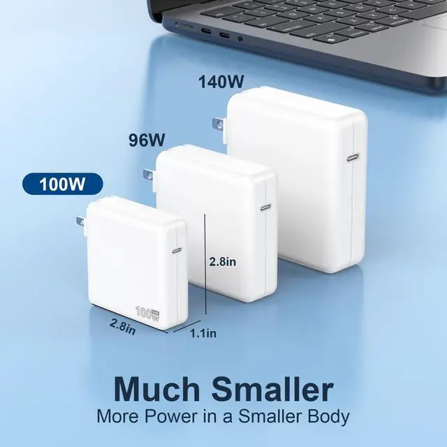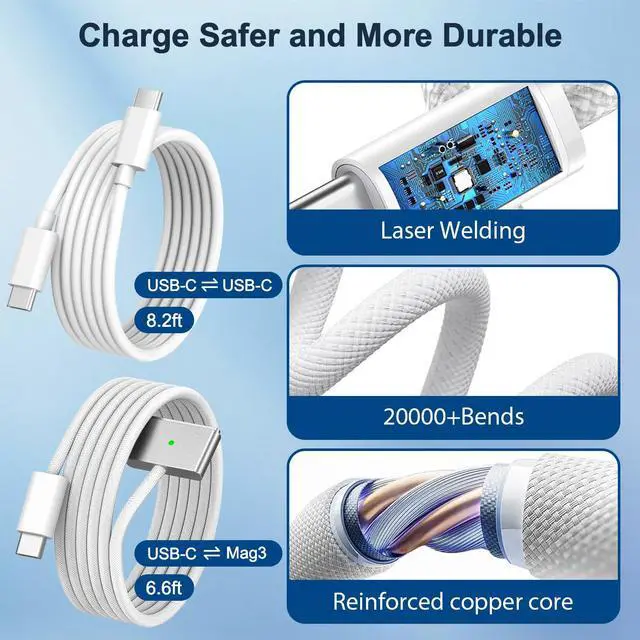 100W Charger for MacBook Pro 14 16 inch MacBook Air 13 15 inch 2025 2024 2023 2022 2021 M4 M3 M2 M1, 100W GaN Power Adapter, 6.6FT USB C to 3 Magnetic 3 Cable , 8.2FT USB C to C Cable