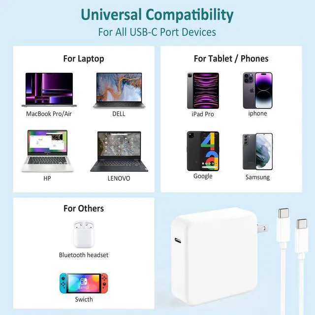 - Carry one USB C charger to meet all your laptop or cellphone charging need, make travel more simple.