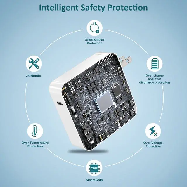 Built-in Emark Chip.Complies with international safety standards and built-in safeguards to protect your laptop or mobile phone from overcharging, short circuit.Support 5A max current and 100W power through.Charge for Pro 16/14 inch at full speed 96W.