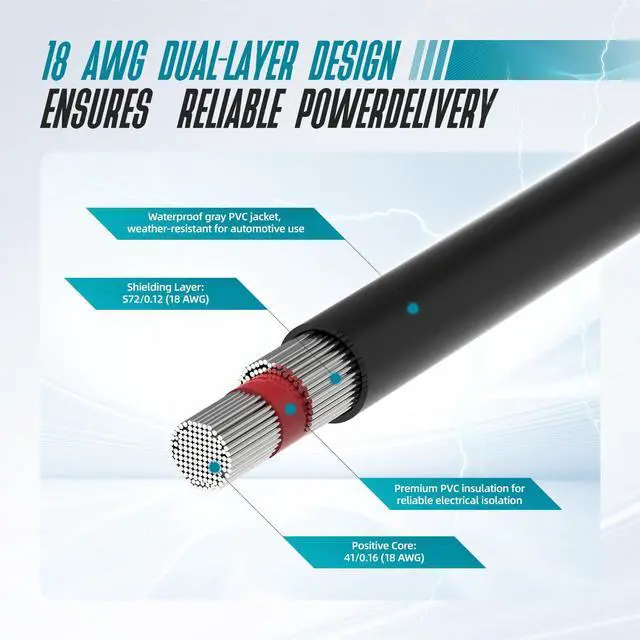 | Wire Gauge | 18AWG copper wire for stable current and low power loss |
