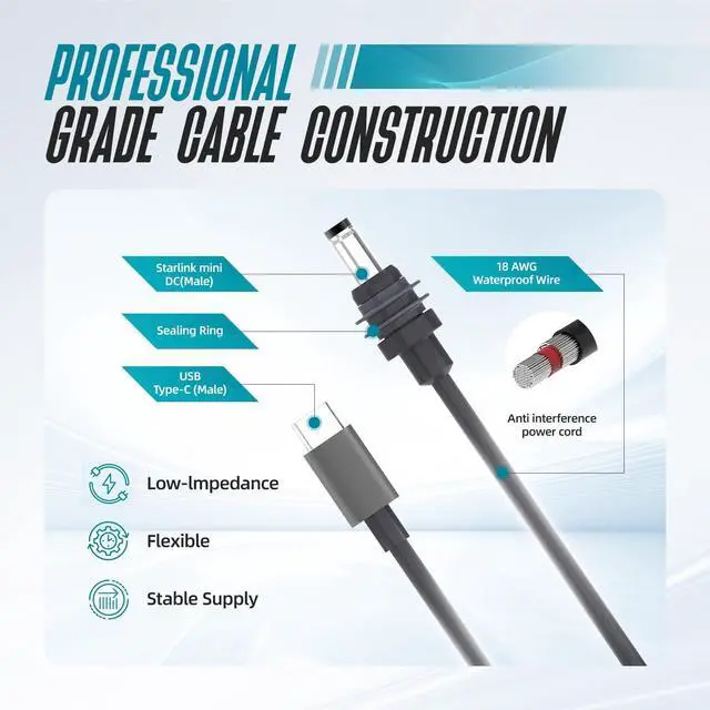 Power your Starlink Mini with confidence using this 16.4FT direct-connect USB-C to DC cable. Designed with a built-in PD chipset, waterproof connectors, and rugged 18AWG copper wiring, it seamlessly delivers 20V/5A from any compatible USB-C PD power source. Perfect for outdoor adventures, RV setups, or emergency backup, this cable ensures reliable performance in any environment—no adapters, no hassle.