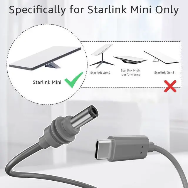 Suitable for Starlink Mini USB C to DC Cable, 9.8-Foot Starlink Mini Type-C Input to DC Output Waterproof Power Cord