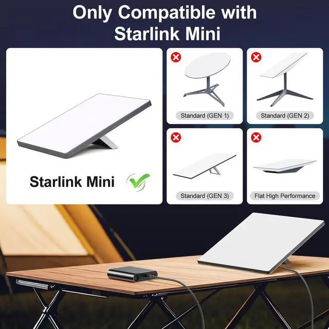 Universal Compatibility: Easily powers your Starlink Mini or compatible devices with a standard DC port, ensuring convenient connectivity wherever you are.