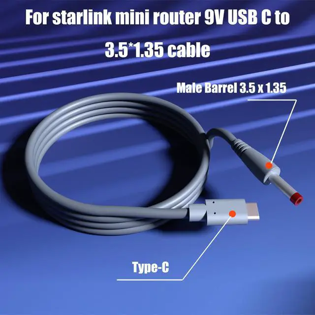 Stay connected wherever you go with this high-quality USB-C to DC 3.5x1.35mm power cable, designed specifically for the Starlink Mini Router (Model UTR-251) and Gen 4 Starlink systems. This 1-meter (3.3 ft) long, flexible power cable uses durable 24AWG copper wire, ensuring low resistance and consistent 9V/1.6A DC output with minimal heat buildup. Weighing just 45 grams, it`s compact enough for mobile setups, yet strong enough for long-term installation in both indoor and outdoor environments.