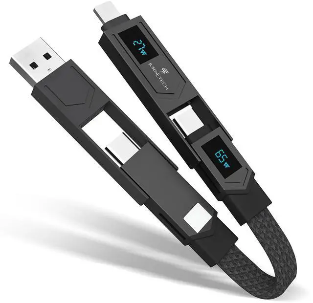 JURNETECH Magnetic 4-in-1 LED Dual Screen Keychain Multi-Charging Cablea compact, versatile, and efficient solution for all your charging needs. This sleek and portable keychain cable is designed for those who demand convenience, durability, and fast charging capabilities on the go. This Fast Charging Cable is a versatile and powerful charging solution for your devices, ensuring convenience and minimizing clutter. Crafted with zinc alloy connectors, this cable boasts durability and longevity, withstanding the rigors of daily use. Its impressive 65W power output allows for rapid charging, ensuring your devices are juiced up and ready to go in no time. Compatible with a wide range of Apple, Google, and Samsung devices