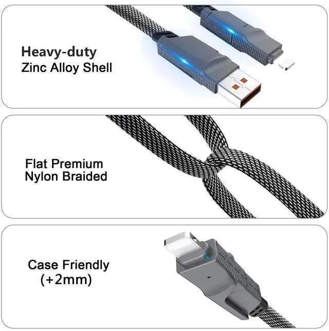 ![Alt view image 5 of 7 - 2Pack 4-in-1 USB C Cable 60W 6FT Lightning Cable Fast Charging Flat Nylon Braided for iPhone iPad Charger Cord [480Mbps Data Sync] Multi Charge Cable with Lightning/Type C/USB A Port](https://c1.neweggimages.com/productimage/nb640/C3H4D2512180LBR84B1.jpg)