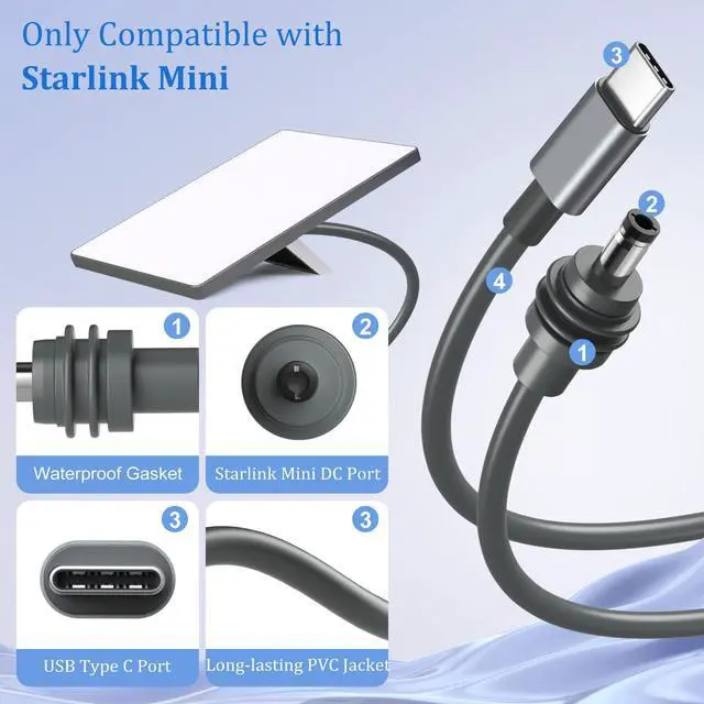 Starlink Mini USB C to DC Power Cable Replacement Extension Cord(Gray)