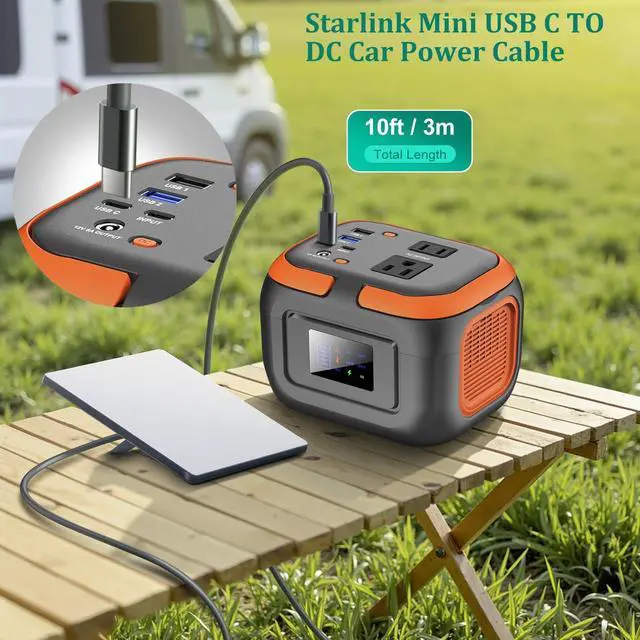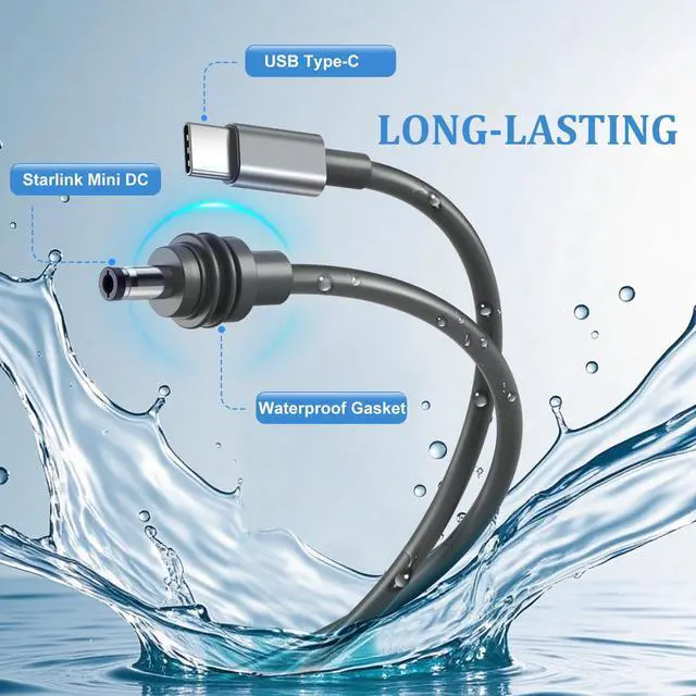 Starlink Mini Type C to DC Power Cable equipped with waterproof materials and Snowmelt Melt, this cable is perfect for outdoor adventures, withstanding rain, dirt, and challenging conditions to ensure dependable connectivity