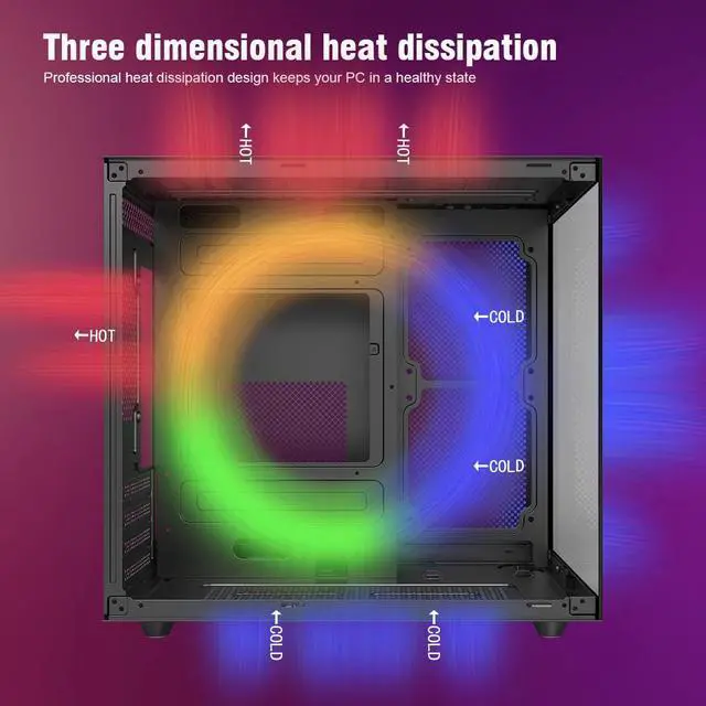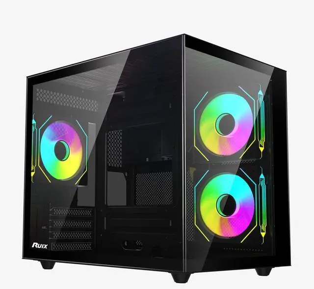 This Smart & Compact case offers exceptional functionality in a small form factor, with dimensions of 13.39 x 10.87 x 12.4 inches. Despite its size, it provides Good Compatibility, supporting GPUs up to 330mm, CPU coolers up to 160mm, MATX or ITX motherboards, and both 3.5-inch and 2.5-inch drives. It comes Pre-Installed with three high-performance 120mm ARGB PWM prism gaming fans, and features Panoramic Tempered Glass on two sides for a sleek and durable design. With support for up to 7 fans or a 240mm AIO cooler, and Magnetic Dust Filters on the top and bottom, it ensures both Ventilation and Dust Protection, making it ideal for any setup.