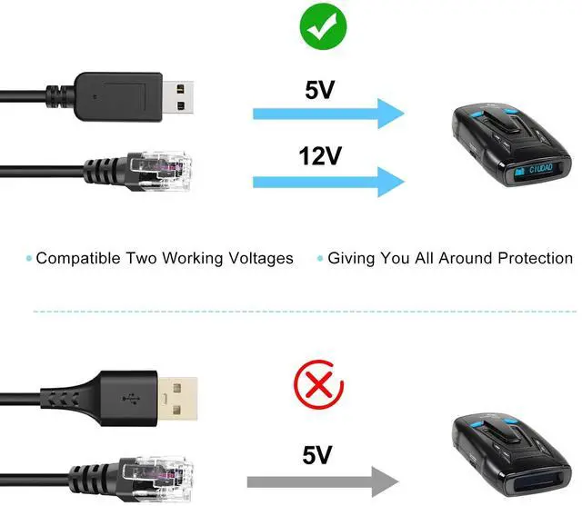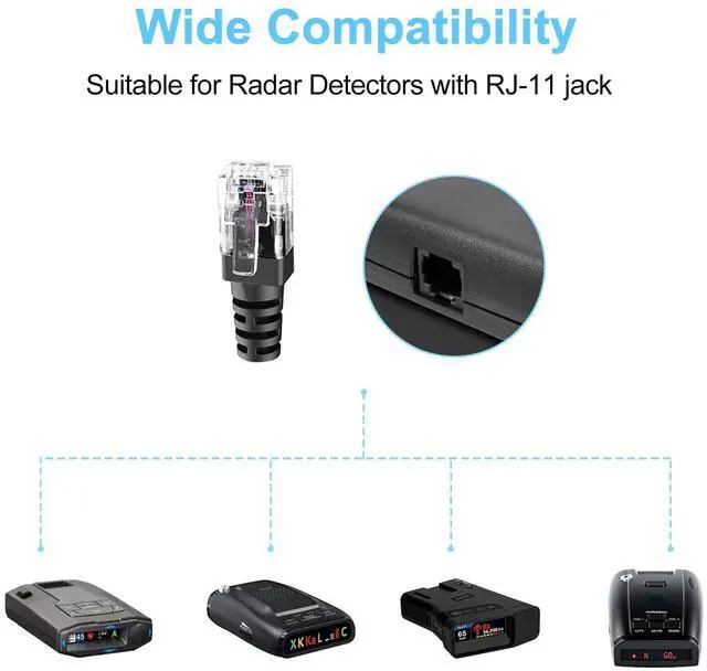 Suitable for Replacement Power Cable supply for Valentine One, Escort Passport 9500i, 8500 X50, Solo S2, Passport 7500S, 8500, 7500, 6800; Beltronics STi Driver, Pro RX65, Pro RX55, Vector 995, 965, 955, 940 (phone style connector), 895, and Express 795; Uniden LRD950 Radar Detector and most Radar Detectors with RJ-11 jack.