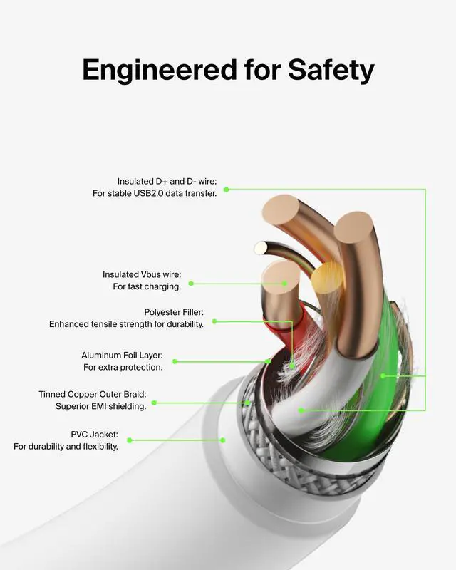 SUPERIOR DURABILITY: The Belkin BoostCharge Cable has been tested to survive over 8,000plus bends, and is more durable than a typical USB-C cable.