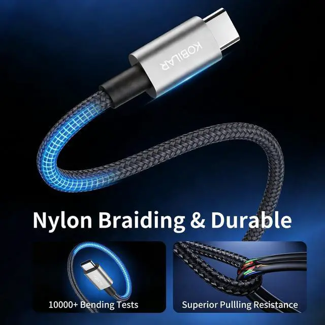 Long USB C Cable Superior Durability: Kobilar Constellation USB Cables Series Leo. With a double-braided nylon construction, these cables are built to last, enduring up to 48,000 bends for long-lasting performance you can rely on.