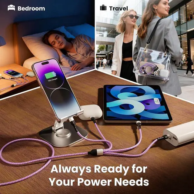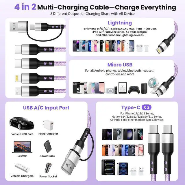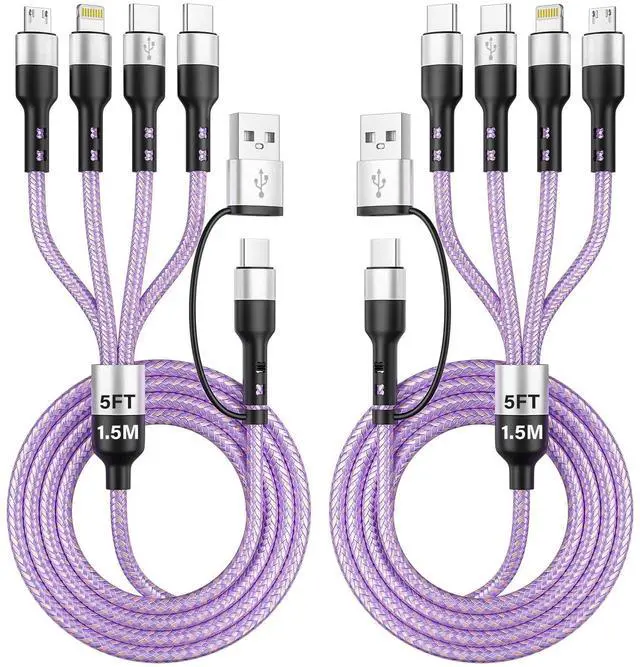 ![Alt view image 2 of 7 - 4-in-2 Dual Type-C Multi Charging Cable [2Pack-5FT], Nylon Braided Travel Essential for Airplane Cruise, USB A/C to Dual C/Lightning/Micro USB, Compatible with iPhone 17-8 Android iPad Galaxy Tablet](https://c1.neweggimages.com/productimage/nb640/C5JMD26030503VZA656.jpg)