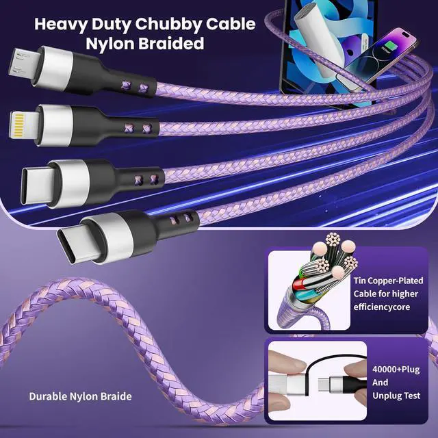 ![Main image of 4-in-2 Dual Type-C Multi Charging Cable [2Pack-5FT], Nylon Braided Travel Essential for Airplane Cruise, USB A/C to Dual C/Lightning/Micro USB, Compatible with iPhone 17-8 Android iPad Galaxy Tablet](https://c1.neweggimages.com/productimage/nb640/C5JMD26030503VZ9721.jpg)