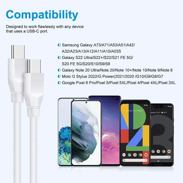 Google Pixel 10a 10 9 8 7 6 Pro Charger Cable,6ft Android Phone Charger Cord USB C to C Cable for Google Pixel 10a 10 9a 9 pro xl fold 8 8a 7 7 Pro 7A 6 Pro 6a 5a 5 4a 4xl 3a 3xl 2xl xl,Galaxy Z Fold 7 6 5 4 3/Z Flip 7 6 5 4 3,S24/S23/S22/S21/S20,S10,A73,A53,A17,A16,A15,A14,A13, A03S
