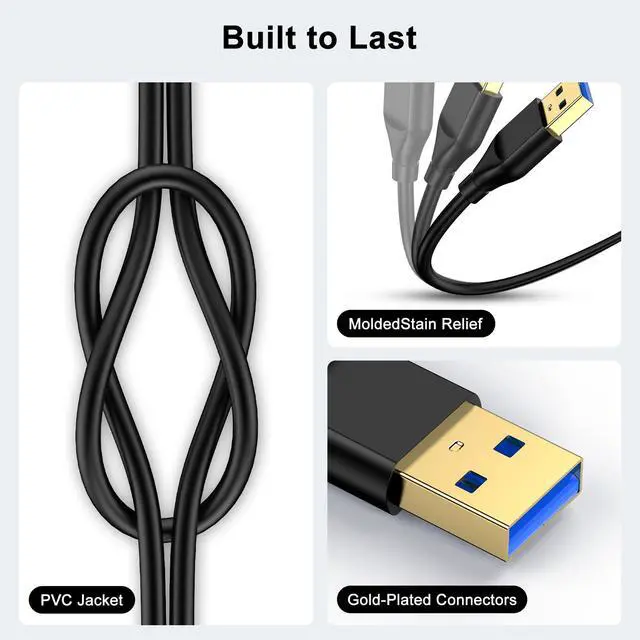 • Durable Long USB 3.0 Cable for Hard Drive :USB 3.0 a male to type a male cables is excellent for protecting the USB sockets of your devices,to avoid damage and wear in daily frequent plugging and unplugging process. Pass 20,000 bending test, this usb male to male cord is more reliable, specially designed for a longer lifespan. Whats more, 6 ft usb a to usb a cord prevent you from being limited to where you can go while use the device, and very convenient for moving around at home, car or office.
