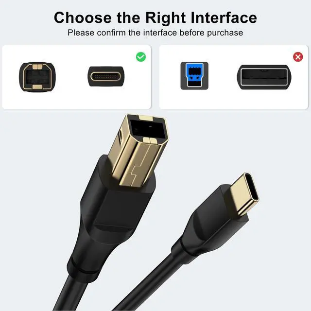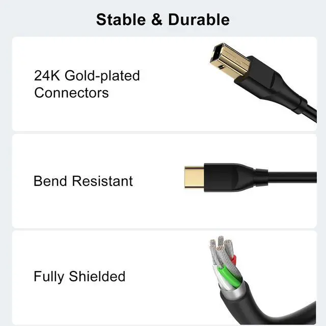 USB B to USB C Printer Cable 20FT, Type B to Type C Printer Cord for MacBook Pro/Air, MIDI Cable MIDI Keyboard/DJ Controller/DAC/Yamaha Casio Digital Piano